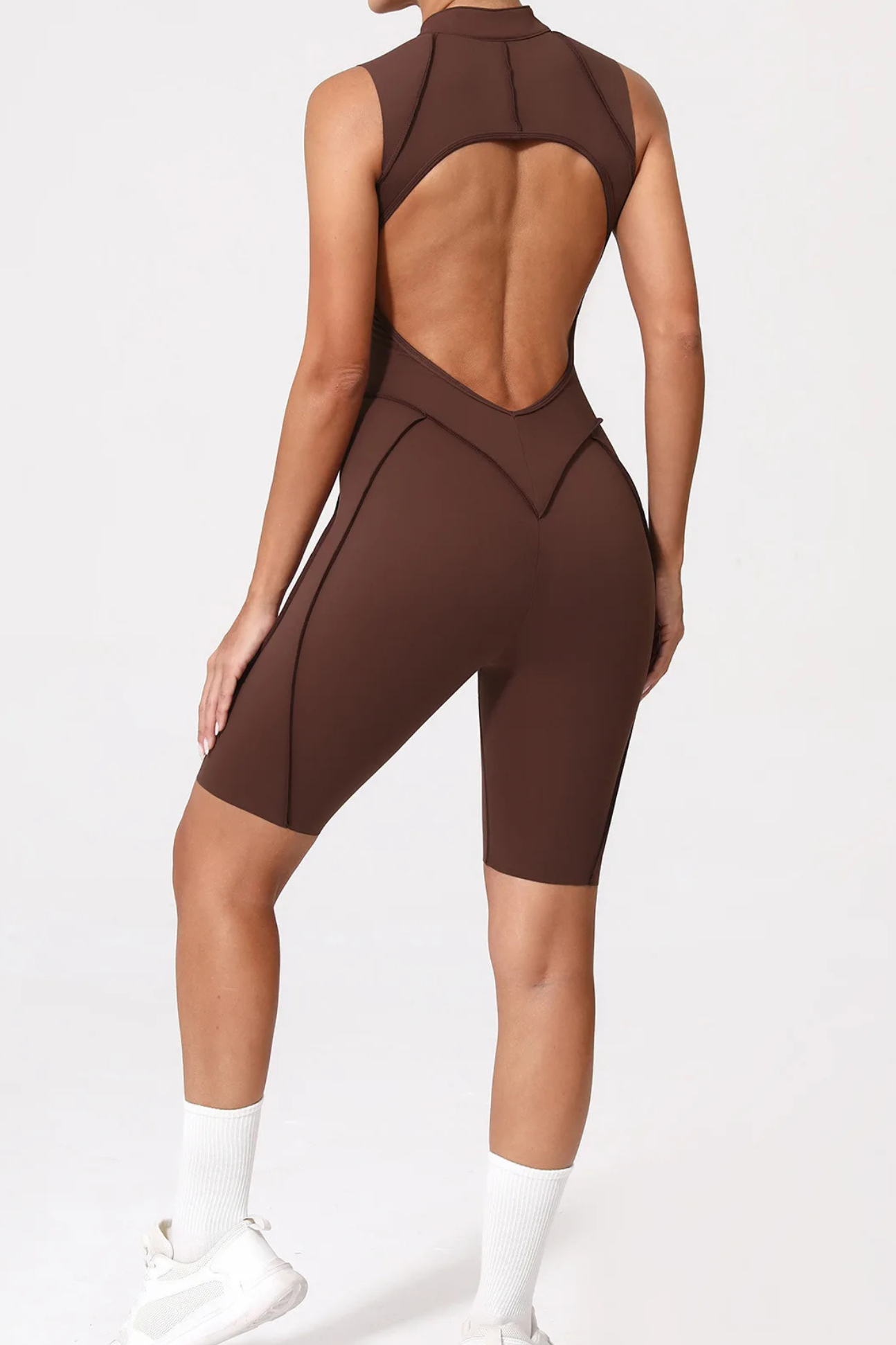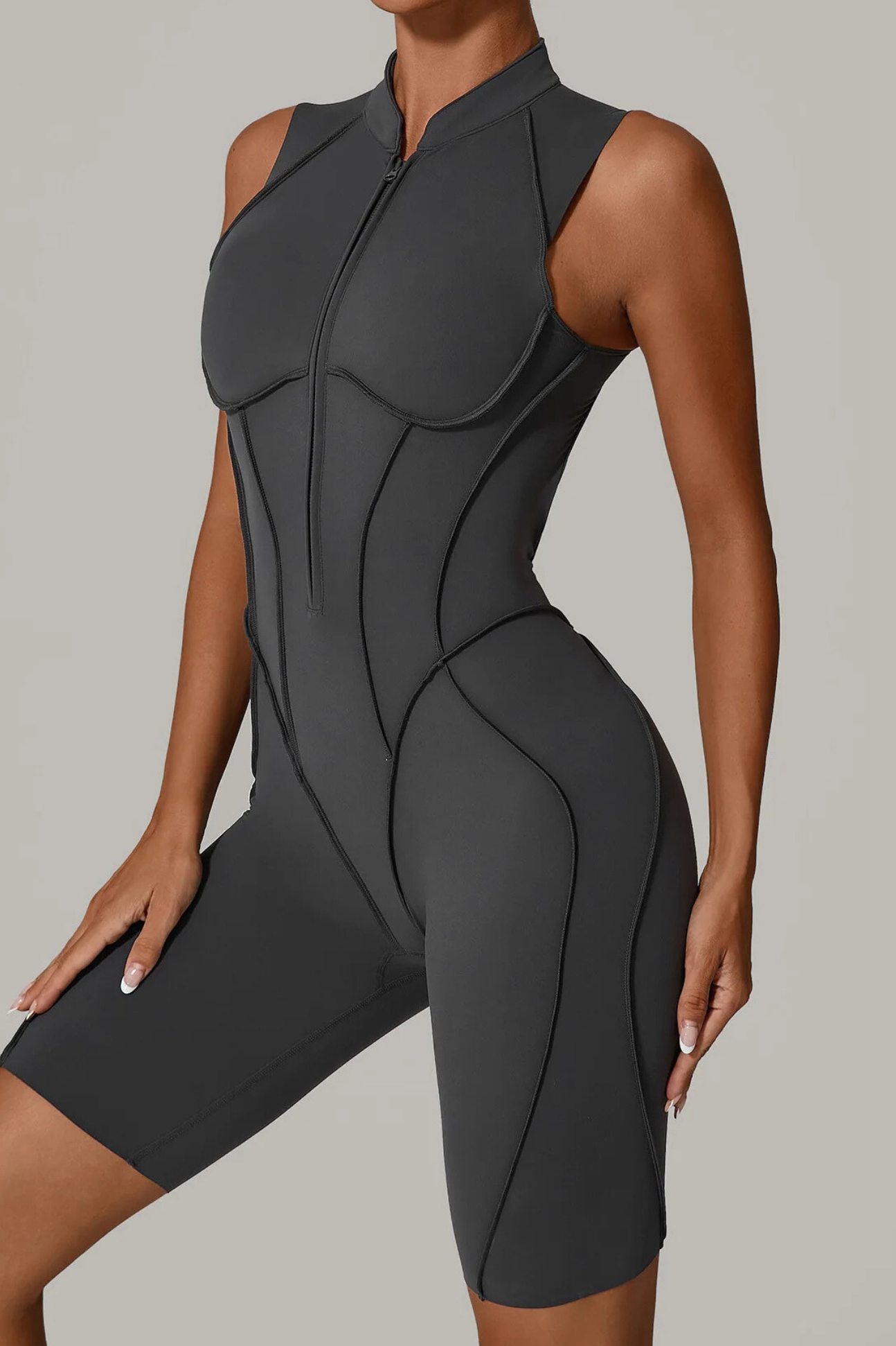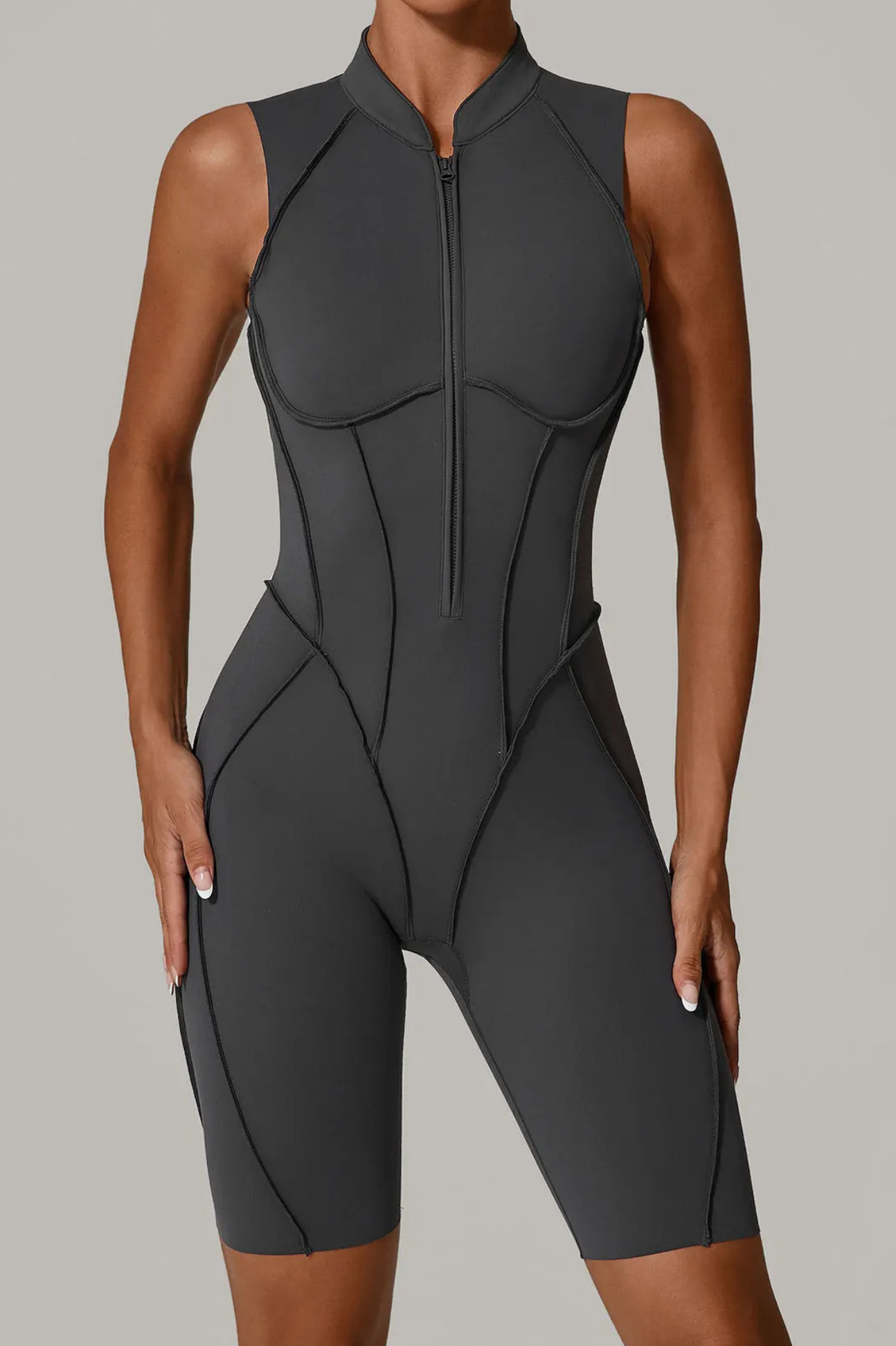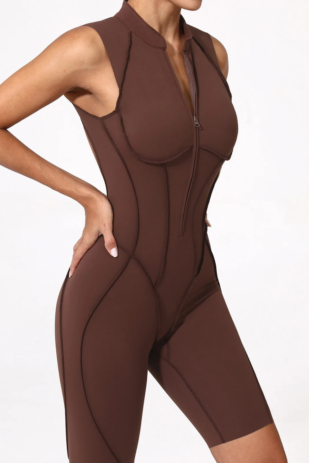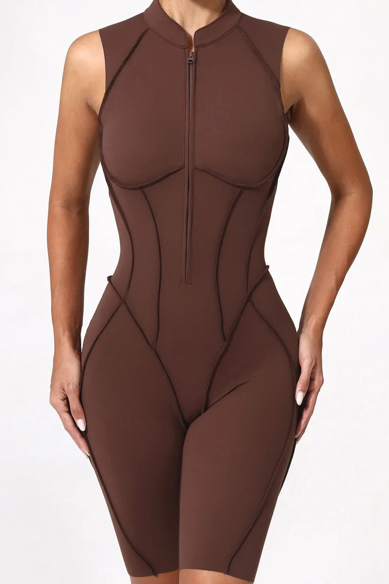 A high-performance zip-up jumpsuit designed to sculpt your body with targeted compression and breathable stretch for maximum comfort.