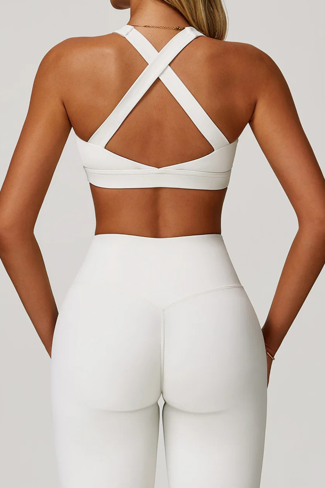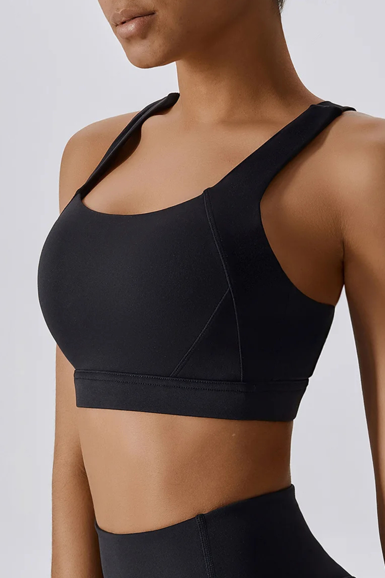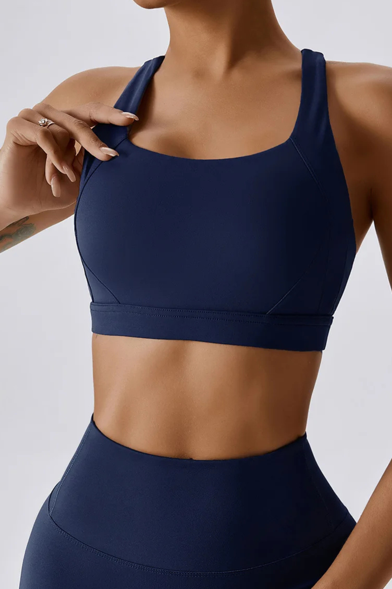 A versatile, cross-back sports bra crafted with a breathable knit weave that adapts to your movement. Its durable nylon–spandex blend offers year-round comfort, from summer workouts to winter layering.