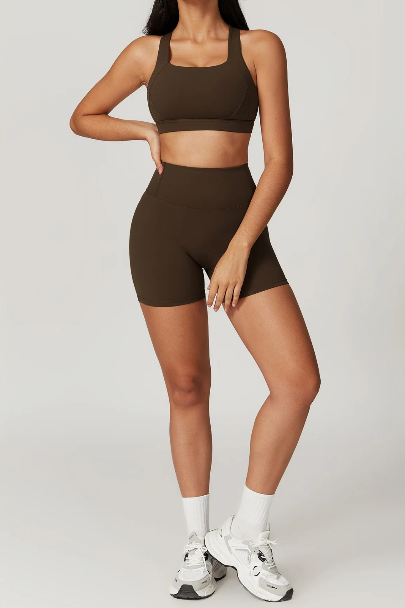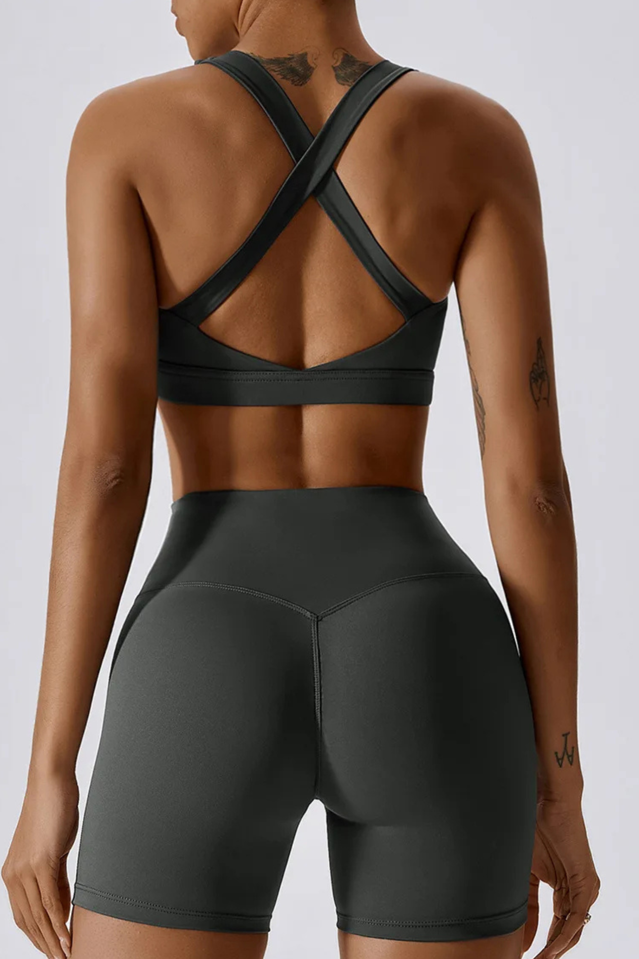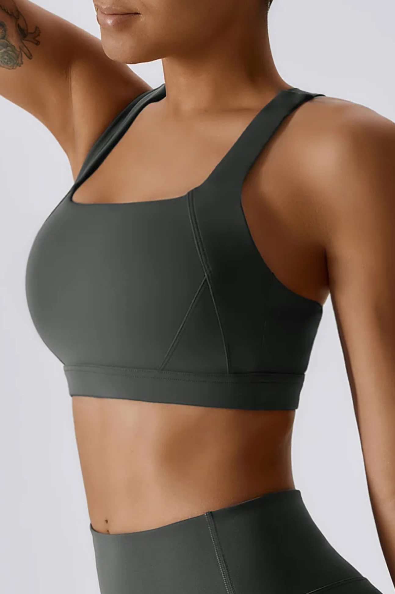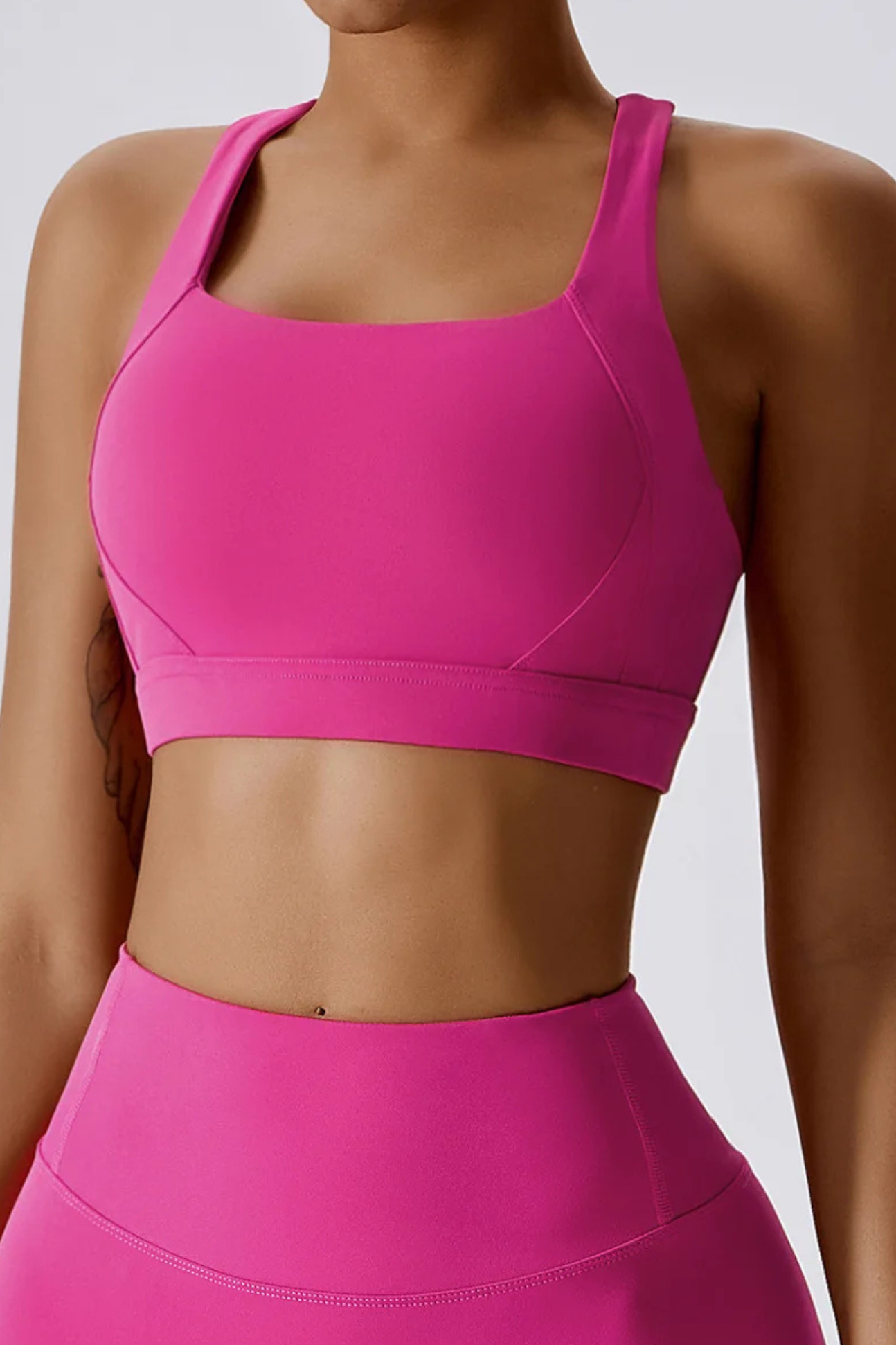 A versatile, cross-back sports bra crafted with a breathable knit weave that adapts to your movement. Its durable nylon–spandex blend offers year-round comfort, from summer workouts to winter layering.